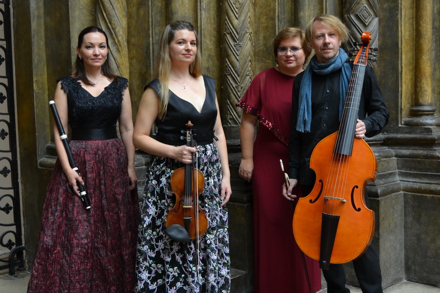 Екатерина Тугаринова (флейта), Мила Фраёнова (скрипка, вокал), Ольга Филиппова (клавесин), Руст Позюмский (виола да гамба)